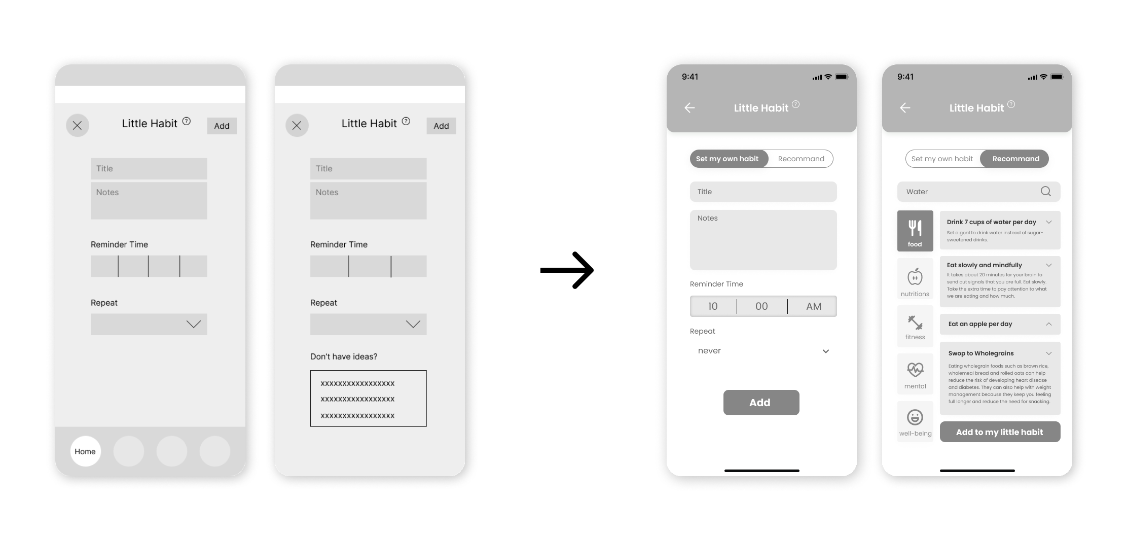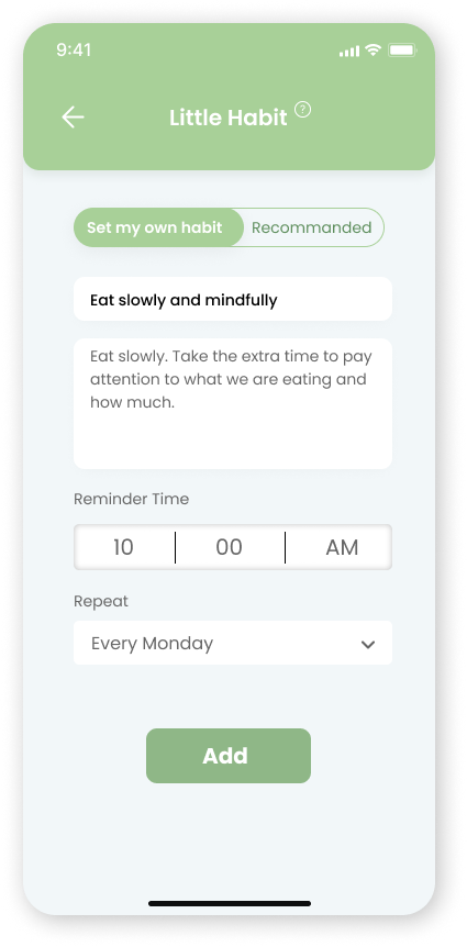 Based on feedback from the first usability test, testers suggested that there should have “recommendations “ for little habits.