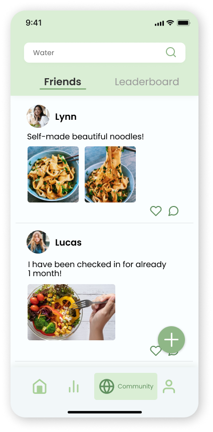 Upon feedback from mentors, the main goal for the community is to help users encourage and supervise each other in their social circle. Therefore, I add in leaderboards from different dimensions and delete featured articles.